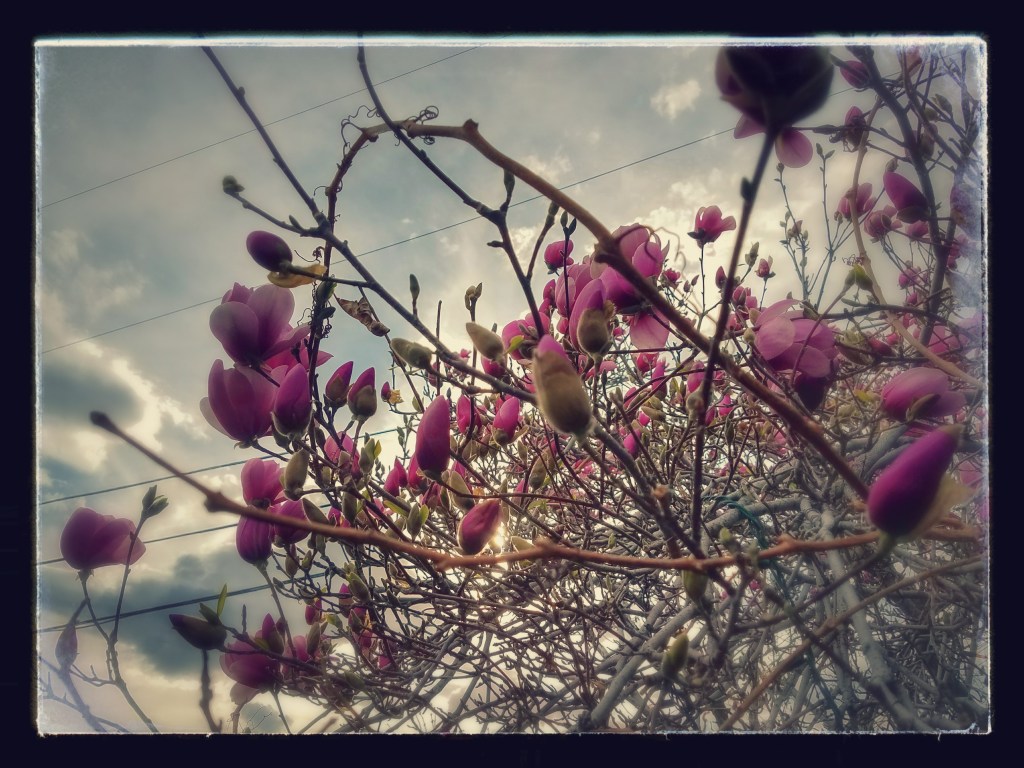 Dancing magnolia blossoms, a bird chitters, the glass wind chimes sound in a subtle breeze. RoRo cuddles into me after a small argument about poking mommy’s booby with a pencil. Teague’s journal is a secret journal.